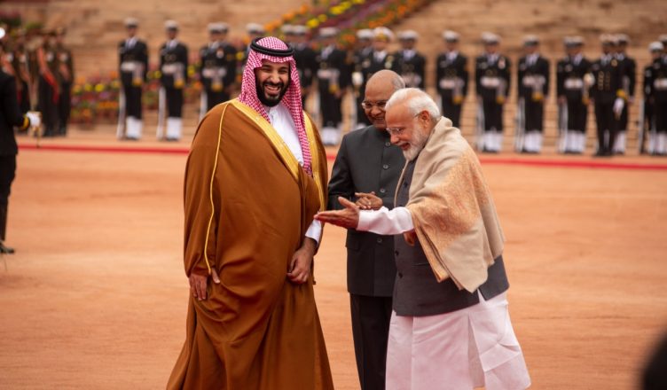 Indian prime minister Narendra Modi meets with Saudi crown prince Mohammed bin Salman in New Delhi during a state visit in February 2019, representing the close ties between India and the Arab Gulf states (Shutterstock/Pradeep Gaurs).