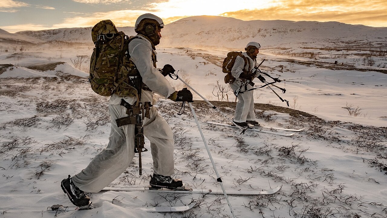 A Surveillance and Reconnaissance Squadron (SRS) of the UK’s Royal Marines conducting Live Firing Tactical Training during Winter Deployment 21 in the Arctic. (UK Ministry of Defence/PO Phot Si Ethell) File:Royal Marines master survival skills in the Arctic MOD 45169593.jpg – Wikimedia Commons