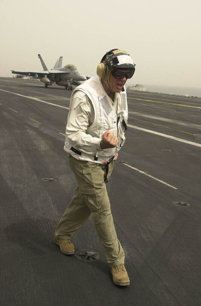 In 2003, R. Lee Ermey, the former Marine drill instructor best known for his role as the merciless Gunnery Sergeant Hartman in Full Metal Jacket, visited CVN-68 for a segment on the History Channel’s Mail Call. Two years later, when CVN-68 commemorated its 30 years of active service, film crews spent an entire deployment on board for the PBS documentary Carrier, which provided an intimate look at life aboard the warship.