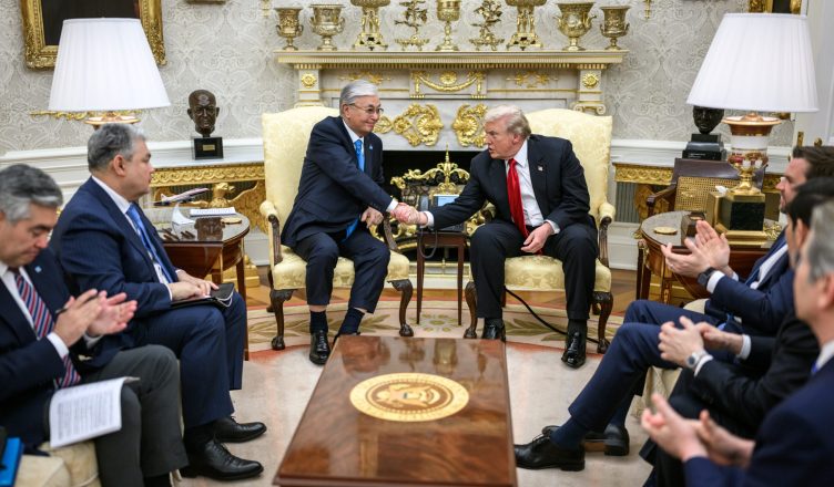 President Donald Trump meets with President of the Republic of Kazakhstan Kassym-Jomart Tokayev in the Oval Office on November 6, 2025, inaugurating a new, upward phase in US-Kazakh relations. (The White House/Daniel Torok)