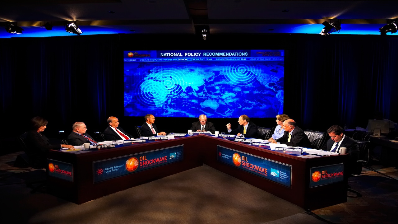 Oil ShockWave placed a simulated Cabinet, typically composed of former Cabinet officials, into a rapidly evolving energy crisis, requiring them to make decisions and present recommendations to a fictional president. We developed scenarios ranging from terrorist attacks on tankers in the Bosphorus Strait to instability in Nigeria and Saudi Arabia, and to disruptions in the Strait of Hormuz, similar to what we are seeing today. Across all these exercises, we gained valuable insight as to how the United States might respond to the current situation and what America can do going forward.