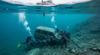 Водолазы подняли на поверхность тела восьми человек, включая китайских туристов, которые провалились под лёд на автомобиле УАЗ вблизи мыса Хобой на озере Байкал.