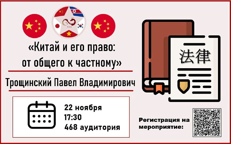 Восточноазиатский клуб Дипломатической академии МИД России приглашает вас на лекцию: «Китай и его право: от общего к частному».