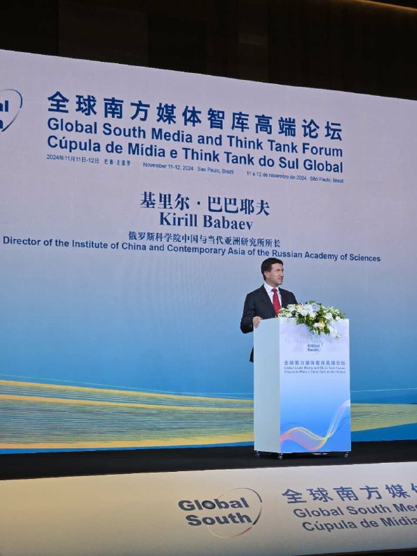 Директор ИКСА РАН выступил на пленарной сессии Форума СМИ и мозговых центров Глобального Юга в Сан-Паулу. Форум объединяет руководителей ведущих политических СМИ и аналитических центров России, Китая и развивающегося мира.