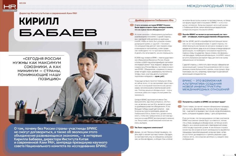 ΠΠΈΡΠ΅ΠΊΡΠΎΡ ΠΠΠ‘Π Π ΠΠ, ΠΏΡΠ΅Π·ΠΈΠ΄Π΅Π½Ρ ΠΠΠ¦, Π·Π°ΠΌΠ΅ΡΡΠΈΡΠ΅Π»Ρ ΠΏΡΠ΅Π΄ΡΠ΅Π΄Π°ΡΠ΅Π»Ρ ΠΡΠ΅Π·ΠΈΠ΄ΠΈΡΠΌΠ° ΠΠ°ΡΡΠ½ΠΎΠ³ΠΎ ΡΠΎΠ²Π΅ΡΠ° ΠΠΠ ΠΠ ΠΠΠ‘ ΠΠΈΡΠΈΠ»Π» ΠΠ°Π±Π°Π΅Π² Π² ΠΈΠ½ΡΠ΅ΡΠ²ΡΡ Π΄Π»Ρ ΠΆΡΡΠ½Π°Π»Π° Β«HR-ΠΠ°ΡΡΠ½Π΅ΡΒ» ΡΠ°ΡΡΠΊΠ°Π·Π°Π» ΠΎ ΡΠΎΠΌ, ΠΏΠΎΡΠ΅ΠΌΡ Π±Π΅Π· Π ΠΎΡΡΠΈΠΈ ΡΡΡΠ°Π½Ρ-ΡΡΠ°ΡΡΠ½ΠΈΡΡ ΠΠ ΠΠΠ‘ Π½Π΅ ΡΠΌΠΎΠ³ΡΡ Π΄ΠΎΠ³ΠΎΠ²ΠΎΡΠΈΡΡΡΡ, Π° ΡΠ°ΠΊΠΆΠ΅ ΠΎΠ± ΡΠ²ΠΎΠ»ΡΡΠΈΠΈ ΡΡΠΎΠ³ΠΎ ΠΎΠ±ΡΠ΅Π΄ΠΈΠ½Π΅Π½ΠΈΡ ΡΠ°Π·Π²ΠΈΠ²Π°ΡΡΠΈΡ ΡΡ ΡΠΊΠΎΠ½ΠΎΠΌΠΈΠΊ.