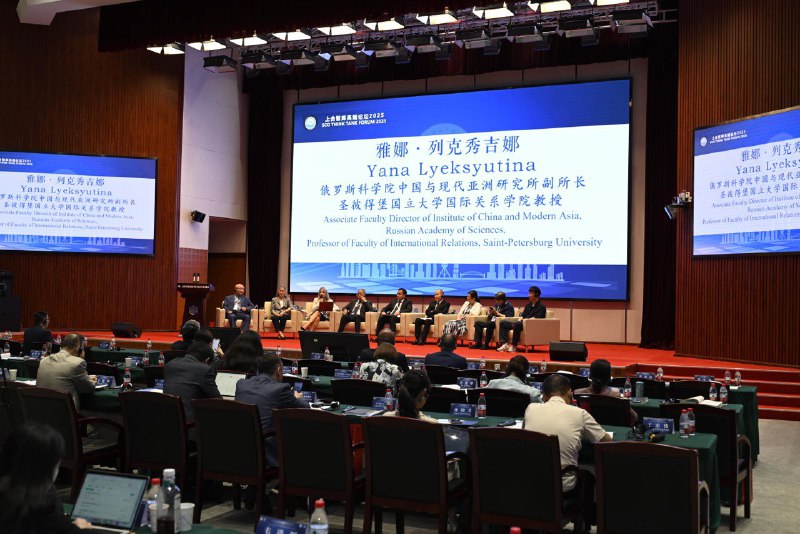 ΠΠ°ΠΌΠ΅ΡΡΠΈΡΠ΅Π»Ρ Π΄ΠΈΡΠ΅ΠΊΡΠΎΡΠ° ΠΠΠ‘Π Π ΠΠ, Π΄ΠΎΠΊΡΠΎΡ ΠΏΠΎΠ»ΠΈΡΠΈΡΠ΅ΡΠΊΠΈΡ Π½Π°ΡΠΊ, ΠΏΡΠΎΡΠ΅ΡΡΠΎΡ Π ΠΠ Π―Π½Π° ΠΠ΅ΠΊΡΡΡΠΈΠ½Π° Π²ΡΡΡΡΠΏΠΈΠ»Π° Π½Π° Π€ΠΎΡΡΠΌΠ΅ Π°Π½Π°Π»ΠΈΡΠΈΡΠ΅ΡΠΊΠΈΡ ΡΠ΅Π½ΡΡΠΎΠ² Π¨Π°Π½Ρ Π°ΠΉΡΠΊΠΎΠΉ ΠΎΡΠ³Π°Π½ΠΈΠ·Π°ΡΠΈΠΈ ΡΠΎΡΡΡΠ΄Π½ΠΈΡΠ΅ΡΡΠ²Π°, ΠΊΠΎΡΠΎΡΡΠΉ ΠΏΡΠΎΡΡΠ» 11β13 ΠΈΡΠ»Ρ Π² Π¨Π°Π½Ρ Π°Π΅ ΠΏΠΎΠ΄ Π΄Π΅Π²ΠΈΠ·ΠΎΠΌ: Β«Π‘ΠΎΠ΄Π΅ΠΉΡΡΠ²ΠΈΠ΅ ΡΡΡΠΎΠΉΡΠΈΠ²ΠΎΠΌΡ ΡΠ°Π·Π²ΠΈΡΠΈΡ, ΡΡΠΊΠΎΠ²ΠΎΠ΄ΡΡΠ²ΡΡΡΡ βΠ¨Π°Π½Ρ Π°ΠΉΡΠΊΠΈΠΌ Π΄ΡΡ ΠΎΠΌβΒ».
