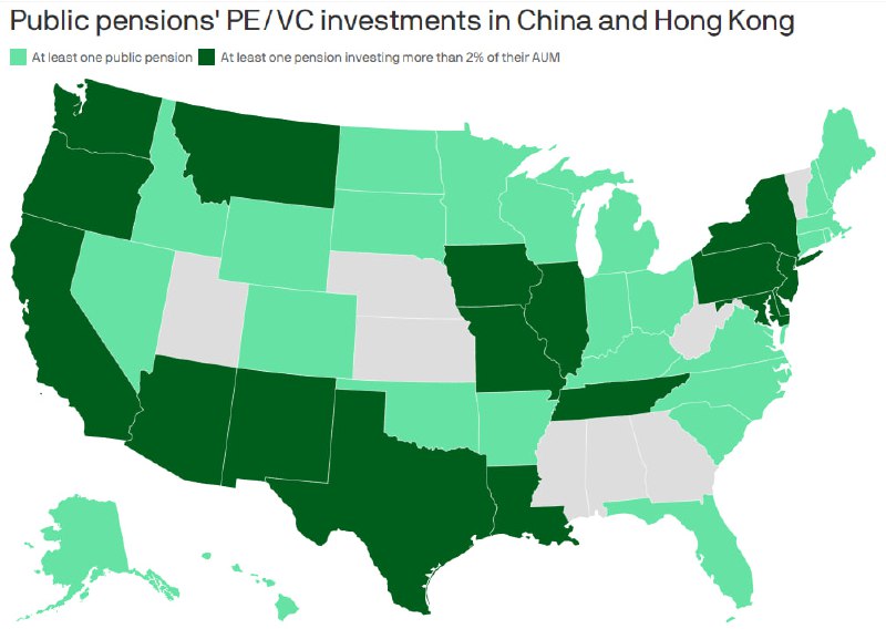 Π’Π΅ΠΏΠ΅ΡΡ ΠΏΡΠΎ ΠΊΠ°ΡΡΡ β ΡΠ΅ΠΌΠ½ΠΎ-Π·Π΅Π»Π΅Π½ΡΠΌ Π½Π° ΠΊΠ°ΡΡΠ΅ ΠΎΠ±ΠΎΠ·Π½Π°ΡΠ΅Π½Ρ ΡΡΠ°ΡΡ, Π² ΠΊΠΎΡΠΎΡΡΡ Π΅ΡΡΡ Ρ ΠΎΡΡ Π±Ρ ΠΎΠ΄ΠΈΠ½ ΠΏΠ΅Π½ΡΠΈΠΎΠ½Π½ΡΠΉ ΡΠΎΠ½Π΄, ΠΈΠ½Π²Π΅ΡΡΠΈΡΡΡΡΠΈΠΉ Π² ΠΠΠ Π±ΠΎΠ»ΡΡΠ΅ 2% ΡΠ²ΠΎΠΈΡ Π°ΠΊΡΠΈΠ²ΠΎΠ². Π‘Π²Π΅ΡΠ»ΠΎ-Π·Π΅Π»Π΅Π½ΡΠΌ β ΡΠ΅ΡΡΠΈΡΠΎΡΠΈΠΈ, Π³Π΄Π΅ ΡΡΡΠ΅ΡΡΠ²ΡΠ΅Ρ Ρ ΠΎΡΡ Π±Ρ ΠΎΠ΄Π½Π° ΠΏΠ΅Π½ΡΠΈΠΎΠ½Π½Π°Ρ ΠΎΡΠ³Π°Π½ΠΈΠ·Π°ΡΠΈΡ, Π²ΠΊΠ»Π°Π΄ΡΠ²Π°ΡΡΠ°ΡΡΡ Π² ΠΊΠΈΡΠ°ΠΉΡΠΊΠΈΠΉ Π±ΠΈΠ·Π½Π΅Ρ.