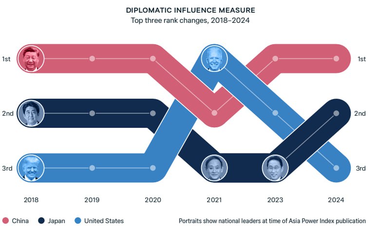 Π ΡΠ΅Π»ΠΎΠΌ Π΄ΠΈΠ½Π°ΠΌΠΈΠΊΠ° ΠΏΠΎ ΡΠ΅Π³ΠΈΠΎΠ½Ρ ΡΠ°ΠΊΠΎΠ²Π°, ΡΡΠΎ Π‘Π¨Π Π²ΡΠ΅ Π΅ΡΠ΅ ΡΠ²Π»ΡΠ΅ΡΡΡ ΡΠ°ΠΌΠΎΠΉ ΠΌΠΎΡΠ½ΠΎΠΉ ΡΡΡΠ°Π½ΠΎΠΉ Π² ΡΠ΅Π³ΠΈΠΎΠ½Π΅ (ΡΡΠ΅ΡΡΡ ΡΠ°Π±Π»ΠΈΡΠ°). ΠΠ΄Π½Π°ΠΊΠΎ ΠΠΈΡΠ°ΠΉ ΡΠΆΠ΅ Π½Π°ΡΡΡΠΏΠ°Π΅Ρ Π½Π° ΠΏΡΡΠΊΠΈ β ΠΊΠΈΡΠ°ΠΉΡΡ Π»ΠΈΠ΄ΠΈΡΡΡΡ, Π½Π°ΠΏΡΠΈΠΌΠ΅Ρ, ΠΏΠΎ ΡΠΏΠΎΡΠΎΠ±Π½ΠΎΡΡΠΈ Π±ΡΡΡΡΠΎ ΡΠ°Π·Π²Π΅ΡΠ½ΡΡΡ ΡΠΈΠ»Ρ Π² ΡΠ»ΡΡΠ°Π΅ ΠΌΠ΅ΠΆΠ³ΠΎΡΡΠ΄Π°ΡΡΡΠ²Π΅Π½Π½ΠΎΠ³ΠΎ ΠΊΠΎΠ½ΡΠ»ΠΈΠΊΡΠ°. ΠΡ ΠΈ ΠΏΠΎ Π΄ΠΈΠΏΠ»ΠΎΠΌΠ°ΡΠΈΡΠ΅ΡΠΊΠΎΠΌΡ Π²Π»ΠΈΡΠ½ΠΈΡ ΡΡΡΠ°Π½Π° ΠΎΡΡΠ°Π΅ΡΡΡ Π½Π° ΠΏΠ΅ΡΠ²ΠΎΠΌ ΠΌΠ΅ΡΡΠ΅, Π΄Π°ΠΆΠ΅ Π½Π΅ΡΠΌΠΎΡΡΡ Π½Π° Π²ΠΎΠ·ΡΠΎΡΡΡΡ Π°ΠΊΡΠΈΠ²Π½ΠΎΡΡΡ Π―ΠΏΠΎΠ½ΠΈΠΈ.
