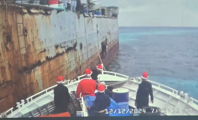 Доставка была осуществлена 12 декабря. Как видно на фотографиях, филиппинцы были в праздничных шапочках — местные СМИ утверждают, что военным, размещенным на корабле, были отправлены подарки.