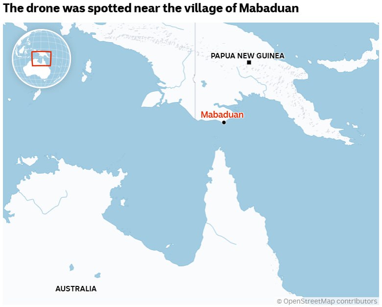 Дрон был замечен возле деревни на побережье Папуа-Новой Гвинеи. Непонятно, что это был за беспилотник, но, скорее всего, он проводил разведку для того, чтобы китайские корабли спокойно прошли через близлежащие воды.