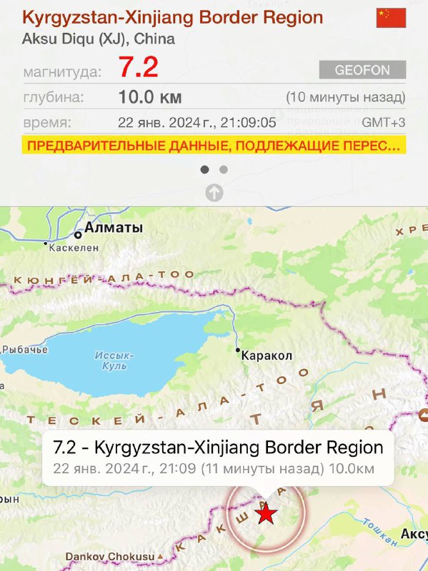 β‘οΈΠΠ° Π³ΡΠ°Π½ΠΈΡΠ΅ ΠΠΈΡΠ°Ρ ΠΈ ΠΠΈΡΠ³ΠΈΠ·ΠΈΠΈ Π·Π°ΡΠΈΠΊΡΠΈΡΠΎΠ²Π°Π½ΠΎ Π·Π΅ΠΌΠ»Π΅ΡΡΡΡΠ΅Π½ΠΈΠ΅ ΠΌΠ°Π³Π½ΠΈΡΡΠ΄ΠΎΠΉ 7, ΡΠΎΠΎΠ±ΡΠ°Π΅Ρ ΠΠ§Π‘ Π£Π·Π±Π΅ΠΊΠΈΡΡΠ°Π½Π°.