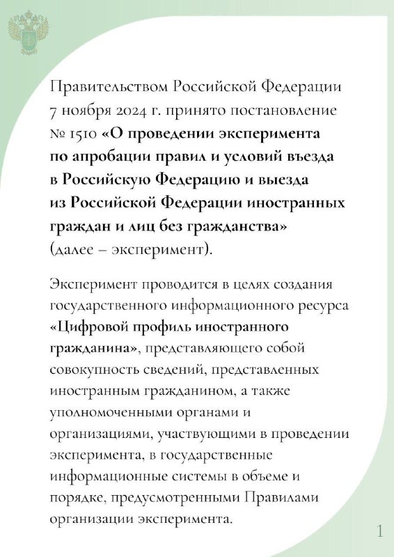 Консульский департамент МИД России🔔 В целях создания государственного информационного ресурса «Цифровой профиль иностранного гражданина» с 1 декабря этого года запущен эксперимент по апробации правил и условий въезда в Россию и выезда из России иностранных граждан и лиц без гражданства. …