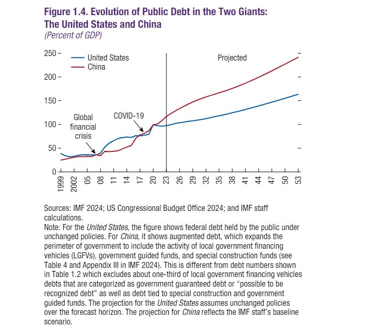Π‘ΠΎΡΡΠΎΡΠ½ΠΈΠ΅ Π³ΠΎΡΡΠ΄Π°ΡΡΡΠ²Π΅Π½Π½ΡΡ ΡΠΈΠ½Π°Π½ΡΠΎΠ² ΠΠΈΡΠ°Ρ ΠΈ Π‘Π¨Π ΠΎΠΊΠ°Π·ΡΠ²Π°ΡΡ ΡΠ΅ΡΠ°ΡΡΠ΅Π΅ Π²Π»ΠΈΡΠ½ΠΈΠ΅ Π½Π° ΡΠΈΡΡΠ°ΡΠΈΡ Π² ΠΌΠΈΡΠΎΠ²ΠΎΠΉ ΡΠΈΡΠΊΠ°Π»ΡΠ½ΠΎΠΉ ΡΠΈΡΡΠ΅ΠΌΠ΅ Π² ΡΠ΅Π»ΠΎΠΌ. Π‘ΠΎΠ³Π»Π°ΡΠ½ΠΎ ΠΏΡΠΎΠ³Π½ΠΎΠ·Π°ΠΌ, Π² ΡΠ°ΠΌΠΊΠ°Ρ Π½ΡΠ½Π΅ΡΠ½Π΅ΠΉ ΠΏΠΎΠ»ΠΈΡΠΈΠΊΠΈ Π² ΠΎΠ±Π΅ΠΈΡ ΡΡΡΠ°Π½Π°Ρ Π³ΠΎΡΡΠ΄Π°ΡΡΡΠ²Π΅Π½Π½ΡΠΉ Π΄ΠΎΠ»Π³ ΠΏΠΎΡΡΠΈ ΡΠ΄Π²ΠΎΠΈΡΡΡ ΠΊ 2053 Π³ΠΎΠ΄Ρ. Π’ΠΎ, ΠΊΠ°ΠΊ ΡΡΠΈ Π΄Π²Π΅ ΡΠΊΠΎΠ½ΠΎΠΌΠΈΠΊΠΈ ΡΠΏΡΠ°Π²Π»ΡΡΡ ΡΠ²ΠΎΠ΅ΠΉ Π½Π°Π»ΠΎΠ³ΠΎΠ²ΠΎ-Π±ΡΠ΄ΠΆΠ΅ΡΠ½ΠΎΠΉ ΠΏΠΎΠ»ΠΈΡΠΈΠΊΠΎΠΉ, ΠΌΠΎΠΆΠ΅Ρ ΠΎΠΊΠ°Π·Π°ΡΡ Π³Π»ΡΠ±ΠΎΠΊΠΎΠ΅ Π²Π»ΠΈΡΠ½ΠΈΠ΅ Π½Π° ΠΌΠΈΡΠΎΠ²ΡΡ ΡΠΊΠΎΠ½ΠΎΠΌΠΈΠΊΡ ΠΈ ΡΠΎΠ·Π΄Π°ΡΡ Π·Π½Π°ΡΠΈΡΠ΅Π»ΡΠ½ΡΠ΅ ΡΠΈΡΠΊΠΈ Π΄Π»Ρ Π±Π°Π·ΠΎΠ²ΡΡ Π±ΡΠ΄ΠΆΠ΅ΡΠ½ΡΡ ΠΏΡΠΎΠ³Π½ΠΎΠ·ΠΎΠ² Π² Π΄ΡΡΠ³ΠΈΡ ΡΡΡΠ°Π½Π°Ρ .