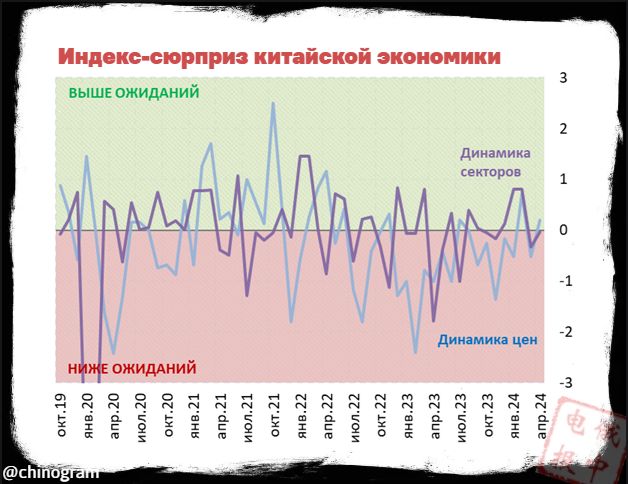 ΠΊΠΈΡΠ°ΠΉΡΠΊΠΈΠΌ ΠΈΠ·Π΄Π°Π½ΠΈΠ΅ΠΌ Caixin, ΠΎΠΊΠΎΠ»ΠΎ Π½ΡΠ»Π΅Π²ΠΎΠΉ ΠΎΡΠΌΠ΅ΡΠΊΠΈ. ΠΡΠΎ ΡΠΊΠ°Π·ΡΠ²Π°Π΅Ρ Π½Π° ΡΠΎ, ΡΡΠΎ Π΄ΠΈΠ½Π°ΠΌΠΈΠΊΠ° ΠΊΠΈΡΠ°ΠΉΡΠΊΠΎΠΉ ΡΠΊΠΎΠ½ΠΎΠΌΠΈΠΊΠΈ Π² Π°ΠΏΡΠ΅Π»Π΅ Π² ΡΠ΅Π»ΠΎΠΌ ΡΠΎΠΎΡΠ²Π΅ΡΡΡΠ²ΠΎΠ²Π°Π»Π° ΠΎΠΆΠΈΠ΄Π°Π½ΠΈΡΠΌ Π°Π½Π°Π»ΠΈΡΠΈΠΊΠΎΠ². ΠΠΎ ΡΠΈΡΡΠ°ΡΠΈΡ ΠΏΠΎ ΠΎΡΠ΄Π΅Π»ΡΠ½ΡΠΌ ΡΠ΅ΠΊΡΠΎΡΠ°ΠΌ ΡΠ°Π·Π½ΠΈΡΡΡ β ΠΏΡΠΎΠΌΠΏΡΠΎΠΈΠ·Π²ΠΎΠ΄ΡΡΠ²ΠΎ ΠΏΡΠΎΠ΄ΠΎΠ»ΠΆΠ°Π΅Ρ ΡΠ°ΡΡΠΈ Π±ΠΎΠ»Π΅Π΅ Π²ΡΡΠΎΠΊΠΈΠΌΠΈ ΡΠ΅ΠΌΠΏΠ°ΠΌΠΈ ΠΏΠΎ ΡΡΠ°Π²Π½Π΅Π½ΠΈΡ Ρ ΠΏΡΠΎΠ³Π½ΠΎΠ·Π°ΠΌΠΈ, Π² ΡΠΎ Π²ΡΠ΅ΠΌΡ ΠΊΠ°ΠΊ Π΄ΠΈΠ½Π°ΠΌΠΈΠΊΠ° ΡΠΎΠ·Π½ΠΈΡΠ½ΡΡ