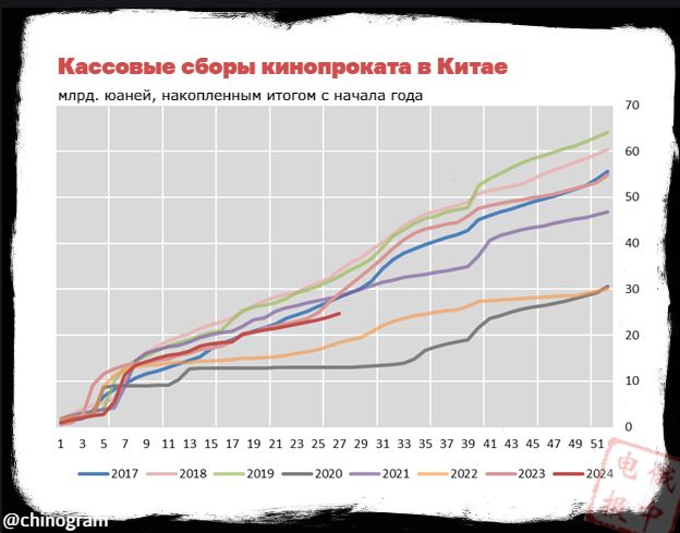 Π‘ наступлСниСм Π»Π΅Ρ‚Π° кассовыС сборы китайского ΠΊΠΈΠ½ΠΎΠΏΡ€ΠΎΠΊΠ°Ρ‚Π° ΡƒΠ²Π΅Π»ΠΈΡ‡ΠΈΠ»ΠΈΡΡŒ, Π½ΠΎ Π½Π΅ ΠΌΠΎΠ³ΡƒΡ‚ ΡΡ€Π°Π²Π½ΠΈΡ‚ΡŒΡΡ с показатСлями ΠΏΡ€ΠΎΡˆΠ»ΠΎΠ³ΠΎ Π³ΠΎΠ΄Π°. По Π΄Π°Π½Π½Ρ‹ΠΌ Π½Π° 7 июля, объСм кассовых сборов с Π½Π°Ρ‡Π°Π»Π° Π³ΠΎΠ΄Π° составил Β₯24,7 ΠΌΠ»Ρ€Π΄. юанСй, Ρ‡Ρ‚ΠΎ Π½Π° 15% мСньшС, Ρ‡Π΅ΠΌ Π·Π° Π°Π½Π°Π»ΠΎΠ³ΠΈΡ‡Π½Ρ‹ΠΉ ΠΏΠ΅Ρ€ΠΈΠΎΠ΄ ΠΏΡ€ΠΎΡˆΠ»ΠΎΠ³ΠΎ Π³ΠΎΠ΄Π°. Π‘ΠΎΠ»Π΅Π΅ Π½ΠΈΠ·ΠΊΠΈΠ΅ ΠΏΠΎΠΊΠ°Π·Π°Ρ‚Π΅Π»ΠΈ ΠΏΡ€ΠΎΠ΄Π°ΠΆ Π·Π° послСдниС 8 Π»Π΅Ρ‚ Π±Ρ‹Π»ΠΈ ΠΎΡ‚ΠΌΠ΅Ρ‡Π΅Π½Ρ‹ Ρ‚ΠΎΠ»ΡŒΠΊΠΎ Π² коронакризисныС 2020 ΠΈ 2022 Π³ΠΎΠ΄Π°, ΠΊΠΎΠ³Π΄Π° дСйствовали Π½Π°ΠΈΠ±ΠΎΠ»Π΅Π΅ ТСсткиС ΠΊΠ°Ρ€Π°Π½Ρ‚ΠΈΠ½Π½Ρ‹Π΅ ограничСния.