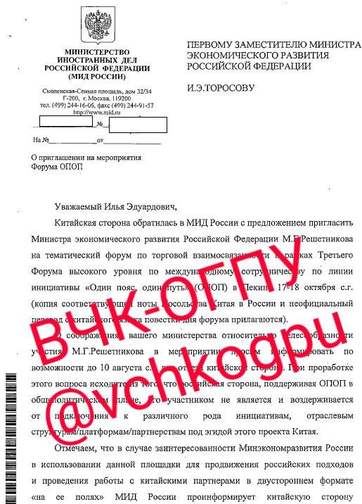 ВЧК-ОГПУСогласно документу, который оказался в распоряжении ВЧК-ОГПУ, МИД РФ проинструктировал всех министров о необходимости воздерживаться от подключения к различного рода инициативам под эгидой проекта Китая «Один пояс, один путь», а Путина об этом проинформировать…