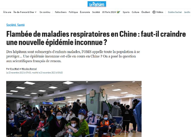 СОЛОВЬЁВLe Parisien: из-за вспышки пневмонии в Китае, детские больницы в Пекине, Ляонине и других местах были переполнены больными детьми, а занятия в школах оказались на грани приостановки. Родители задались вопросом: не скрывают ли власти от граждан новую эпидемию?…