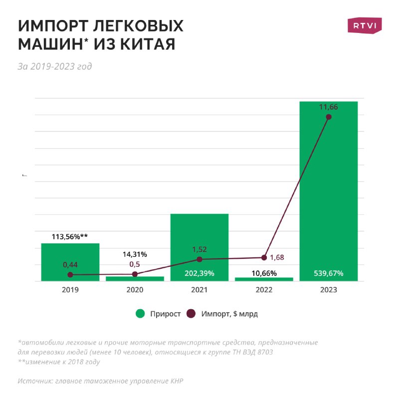 Π 2023 Π³ΠΎΠ΄Ρ ΠΈΠΌΠΏΠΎΡΡ Π»Π΅Π³ΠΊΠΎΠ²ΡΡ Π°Π²ΡΠΎΠΌΠΎΠ±ΠΈΠ»Π΅ΠΉ ΠΈΠ· ΠΠΈΡΠ°Ρ Π² Π ΠΎΡΡΠΈΡ Π²ΡΡΠΎΡ Π½Π° 593,67% ΠΏΠΎ ΡΡΠ°Π²Π½Π΅Π½ΠΈΡ Ρ 2022 Π³ΠΎΠ΄ΠΎΠΌ, ΠΏΠΎΠ΄ΡΡΠΈΡΠ°Π» RTVI, ΠΈΠ·ΡΡΠΈΠ² Π΄Π°Π½Π½ΡΠ΅ ΠΊΠΈΡΠ°ΠΉΡΠΊΠΎΠΉ ΡΠ°ΠΌΠΎΠΆΠ΅Π½Π½ΠΎΠΉ ΡΡΠ°ΡΠΈΡΡΠΈΠΊΠΈ. Π Π΄Π΅Π½Π΅ΠΆΠ½ΠΎΠΌ Π²ΡΡΠ°ΠΆΠ΅Π½ΠΈΠΈ ΠΎΠ±ΡΠ΅ΠΌ ΠΈΠΌΠΏΠΎΡΡΠ° Π΄ΠΎΡΡΠΈΠ³ $11,66 ΠΌΠ»ΡΠ΄. Π 2022 Π³ΠΎΠ΄Ρ ΠΎΠ±ΡΠ΅ΠΌ ΠΈΠΌΠΏΠΎΡΡΠ° ΠΊΠΈΡΠ°ΠΉΡΠΊΠΈΡ Π»Π΅Π³ΠΊΠΎΠ²ΡΡΠ΅ΠΊ ΡΠΎΡΡΠ°Π²Π»ΡΠ» ΡΠΎΠ»ΡΠΊΠΎ $1,68 ΠΌΠ»ΡΠ΄. Π’Π΅ΠΌΠΏ ΠΏΡΠΈΡΠΎΡΡΠ° ΡΠΎΠ³Π΄Π° ΡΠΎΠΆΠ΅ Π²ΡΡΠ΅Π» Π½Π΅Π·Π½Π°ΡΠΈΡΠ΅Π»ΡΠ½ΡΠΉ β Π²ΡΠ΅Π³ΠΎ Π»ΠΈΡΡ 10,66%. ΠΡΠ΅Π΄ΡΠ΄ΡΡΠΈΠΉ ΠΏΠΈΠΊ ΡΠΎΡΡΠ° ΠΏΡΠΈΡΠ΅Π»ΡΡ Π½Π° 2021 Π³ΠΎΠ΄, ΡΠΎΠ³Π΄Π° ΠΎΠ±ΡΠ΅ΠΌ ΠΈΠΌΠΏΠΎΡΡΠ° ΠΈΠ· ΠΠΈΡΠ°Ρ ΡΠΎΡΡΠ°Π²ΠΈΠ» $1,52 ΠΌΠ»ΡΠ΄, ΡΡΠΎ Π² Π΄Π²Π° ΡΠ°Π·Π° Π±ΠΎΠ»ΡΡΠ΅ ΠΎΠ±ΡΠ΅ΠΌΠΎΠ² 2020 Π³ΠΎΠ΄Π° β $0,5 ΠΌΠ»ΡΠ΄.