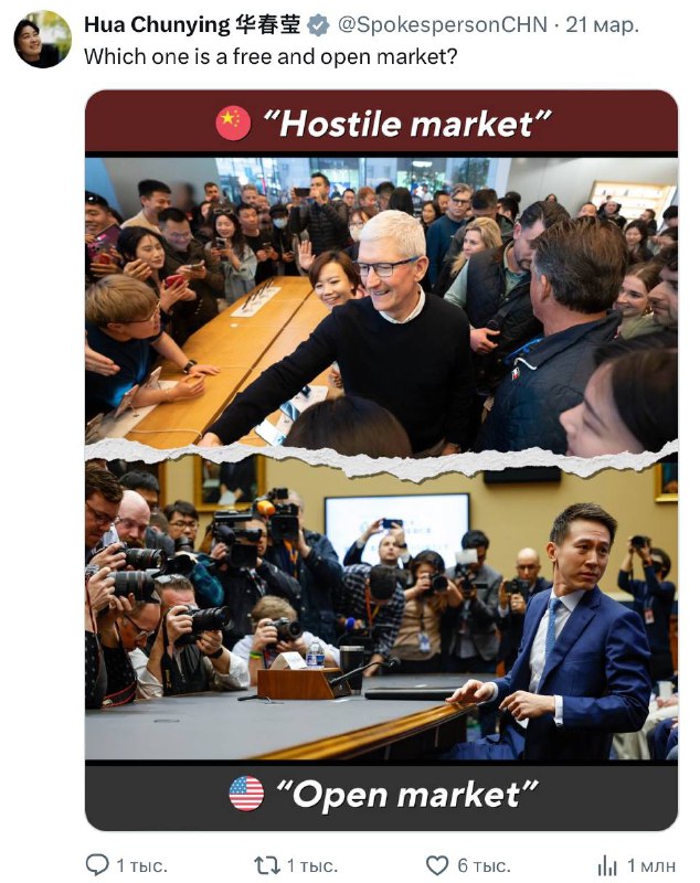 Β«Π Ρ Π²Π°Ρ Π² Π‘Π¨Π ΡΠΎΡΠ½ΠΎ ΠΎΡΠΊΡΡΡΡΠΉ ΡΡΠ½ΠΎΠΊ, ΡΡΠΎ Π²Ρ Ρ ΠΎΡΠΈΡΠ΅ Π·Π°ΠΏΡΠ΅ΡΠΈΡΡ Π½Π°Ρ Π’ΠΈΠΊΠ’ΠΎΠΊ, ΠΊΠΎΡΠΎΡΡΠΉ Ρ Π½Π°Ρ Π² ΠΠΈΡΠ°Π΅ Π΄Π°Π²Π½ΠΎ ΠΏΠΎΠ΄ Π·Π°ΠΏΡΠ΅ΡΠΎΠΌ?Β» (Π²ΠΎΠ»ΡΠ½ΡΠΉ ΠΏΠ΅ΡΠ΅Π²ΠΎΠ΄ ΠΠ£)