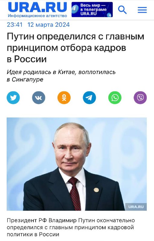 Информагенство УРА.РУ доболталась до того, что якобы Путин предложил использовать меритократический подход в формировании руководящих кадров на встрече с победителями конкурса «Лидеры России».