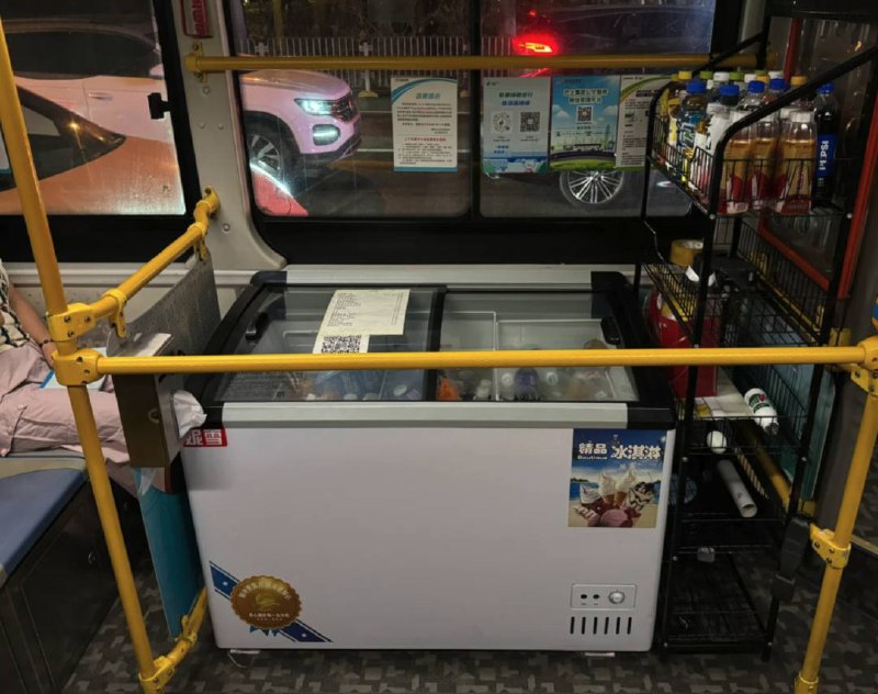 В автобусах Шэньчжэня появились холодильники для продажи напитков и мороженого.