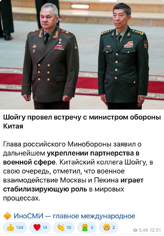 ΠΠ½ΠΎΡΠΌΠΈ @inosmichannel ΡΠΎΠΎΠ±ΡΠ°Π΅Ρ, ΡΡΠΎ Π¨ΠΎΠΉΠ³Ρ ΠΏΡΠΎΠ²Π΅Π» Π²ΡΡΡΠ΅ΡΡ Ρ ΠΏΡΠΎΠΏΠ°Π²ΡΠΈΠΌ ΠΌΠΈΠ½ΠΈΡΡΡΠΎΠΌ ΠΎΠ±ΠΎΡΠΎΠ½Ρ ΠΠΈΡΠ°Ρ (ΡΡΠ΄Ρ ΠΏΠΎ ΡΠΎΡΠΎ) π