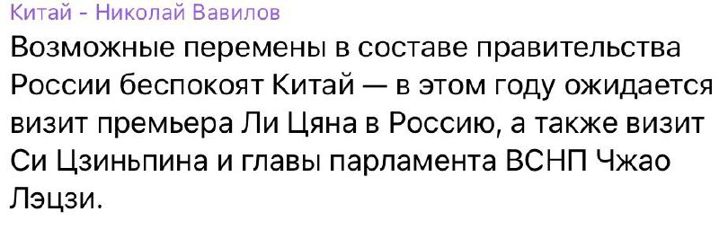 «Возможные перемены в составе правительства России беспокоят Китай».