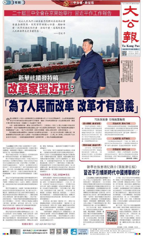 Официальное информационное агентство Синьхуа перед Третьим пленумом опубликовало статью на китайском языке, восхваляющую Си Цзиньпина как “главного реформатора Китая”, титул более высокий, чем у Дэна “архитектора экономических реформ Китая”.