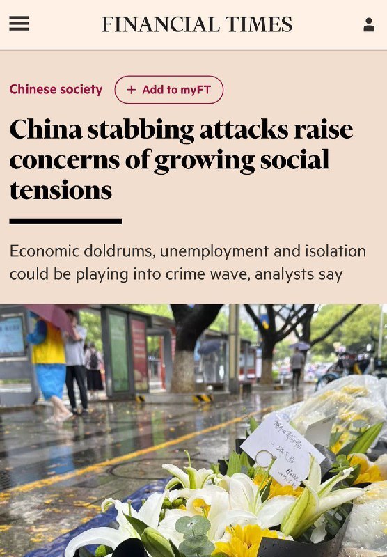 БанкстаВ Китае недавно произошло два нападения с ножами и английская Financial Times делает огромную статью о «волне преступности», которая накрывает страну и раскрывает глубокие проблемы в Китае.