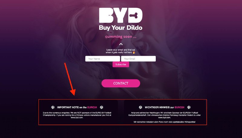 ΠΠΈΡΠ΅Π»ΠΈ ΠΠ΅ΡΠΌΠ°Π½ΠΈΠΈ, ΡΠ²ΠΈΠ΄Π΅Π² ΡΠ΅ΠΊΠ»Π°ΠΌΡ BYD, ΠΏΠΎΡΠ»ΠΈ ΠΈΡΠΊΠ°ΡΡ ΡΠ°ΠΉΡ ΠΊΠΎΠΌΠΏΠ°Π½ΠΈΠΈ Π² ΠΈΠ½ΡΠ΅ΡΠ½Π΅ΡΠ΅, Π²ΠΎΡ ΡΠΎΠ»ΡΠΊΠΎ Π² ΡΠ΅ΠΊΠ»Π°ΠΌΠ΅ Π½Π΅ ΡΠΊΠ°Π·Π°Π½ Π°Π΄ΡΠ΅Ρ Π΄ΠΎΠΌΠ΅Π½Π½ΠΎΠΉ Π·ΠΎΠ½Ρ, ΠΏΠΎΡΡΠΎΠΌΡ Π²ΠΌΠ΅ΡΡΠΎ .com Π½Π΅ΠΌΡΡ Π²Π±ΠΈΠ²Π°ΡΡ Π±ΠΎΠ»Π΅Π΅ ΠΏΡΠΈΠ²ΡΡΠ½ΡΠΉ Π΄Π»Ρ Π½ΠΈΡ .de. Π ΡΠ°ΠΌβ¦ ΠΠ°ΠΊ Π±Ρ ΡΡΠΎ ΡΠΊΠ°Π·Π°ΡΡ? ΠΡ, ΡΡΠΎ ΠΆΠ΅ ΠΠ΅ΡΠΌΠ°Π½ΠΈΡ, ΡΠ°ΠΌΠΈ ΠΏΠΎΠ½ΠΈΠΌΠ°Π΅ΡΠ΅. ΠΠΎΡΡΠΎΠΌΡ ΡΠ°ΠΌ Π²ΠΌΠ΅ΡΡΠΎ Π°Π²ΡΠΎΠΌΠΎΠ±ΠΈΠ»Π΅ΠΉ BYD ΡΠ°ΠΉΡ Π½Π΅Π±ΠΎΠ»ΡΡΠΎΠ³ΠΎ ΠΌΠ°Π³Π°Π·ΠΈΠ½Π° ΡΠ΅ΠΊΡ-ΠΈΠ³ΡΡΡΠ΅ΠΊ Buy Your Dildo (Β«ΠΡΠΏΠΈ ΡΠ²ΠΎΠΉ Π΄ΠΈΠ»Π΄ΠΎΒ»).
