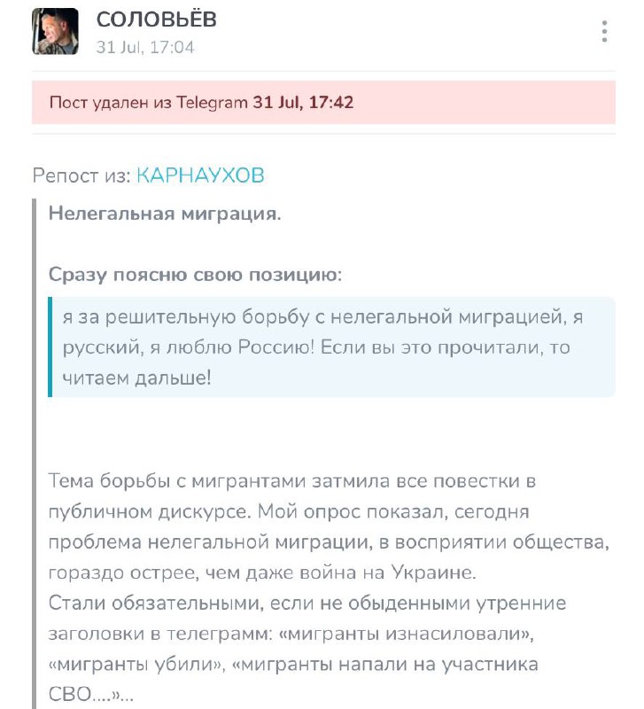 Π‘ΠΎΠ»ΠΎΠ²ΡΠ΅Π² ΡΠ΄Π°Π»ΠΈΠ» ΡΠ΅ΠΏΠΎΡΡ ΠΠ°ΡΠ½Π°ΡΡ ΠΎΠ²Π° π