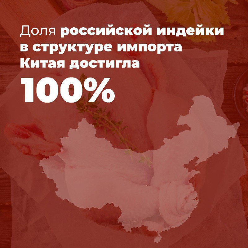 Богласно Π΄Π°Π½Π½Ρ‹ΠΌ Π“Π’Π£ КНР, Π·Π° 1 ΠΏΠΎΠ»ΡƒΠ³ΠΎΠ΄ΠΈΠ΅ 2024 Π³ΠΎΠ΄Π° ΠšΠΈΡ‚Π°ΠΉ ΠΈΠΌΠΏΠΎΡ€Ρ‚ΠΈΡ€ΠΎΠ²Π°Π» Π±ΠΎΠ»Π΅Π΅ 6️⃣,8️⃣ тыс. Ρ‚ΠΎΠ½Π½ мяса ΠΈΠ½Π΄Π΅ΠΉΠΊΠΈ Π½Π° 21,7 ΠΌΠ»Π½ Π΄ΠΎΠ»Π». БША. Π’Π΅ΡΡŒ объСм поставок осущСствлялся ΠΈΠ· России β€” 100% Π΄ΠΎΠ»ΠΈ Ρ€Ρ‹Π½ΠΊΠ°.