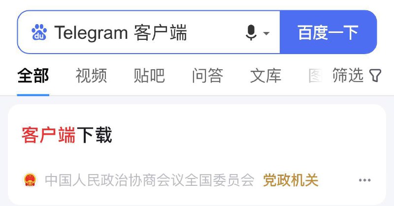 ПослС запроса Π² китайском поисковикС Π‘Π°ΠΉΠ΄Ρƒ — Β«ΠΏΡ€ΠΈΠ»ΠΎΠΆΠ΅Π½ΠΈΠ΅ Π’Π΅Π»Π΅Π³Ρ€Π°ΠΌΒ», Π² ΠΏΠ΅Ρ€Π²ΠΎΠΉ строкС Ρ€Π΅Π·ΡƒΠ»ΡŒΡ‚Π°Ρ‚ΠΎΠ² выдаСтся ссылка Π½Π° скачиваниС ΠΏΡ€ΠΎΠ³Ρ€Π°ΠΌΠΌΡ‹ Народного политичСского ΠΊΠΎΠ½ΡΡƒΠ»ΡŒΡ‚Π°Ρ‚ΠΈΠ²Π½ΠΎΠ³ΠΎ совСта ΠšΠΈΡ‚Π°Ρ.