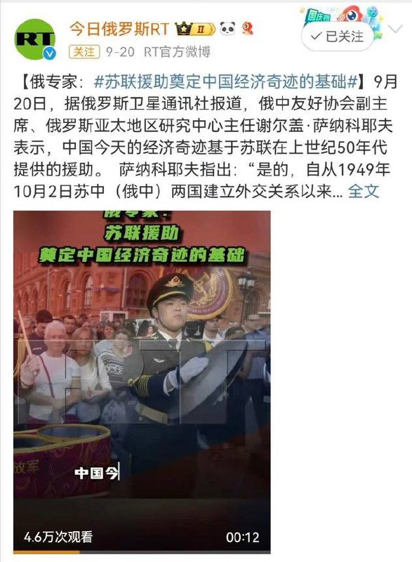 Раша Тудей на китайском удалила из соцсети Вэйбо свое сообщение, что основой китайского экономического чуда была советская помощь.