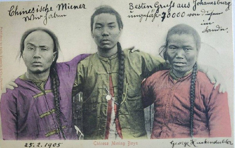 В период с 1904 по 1910 год на золотых приисках Витватерсранда близ Йоханнесбурга (ЮАР) работало 64.000 китайцев.