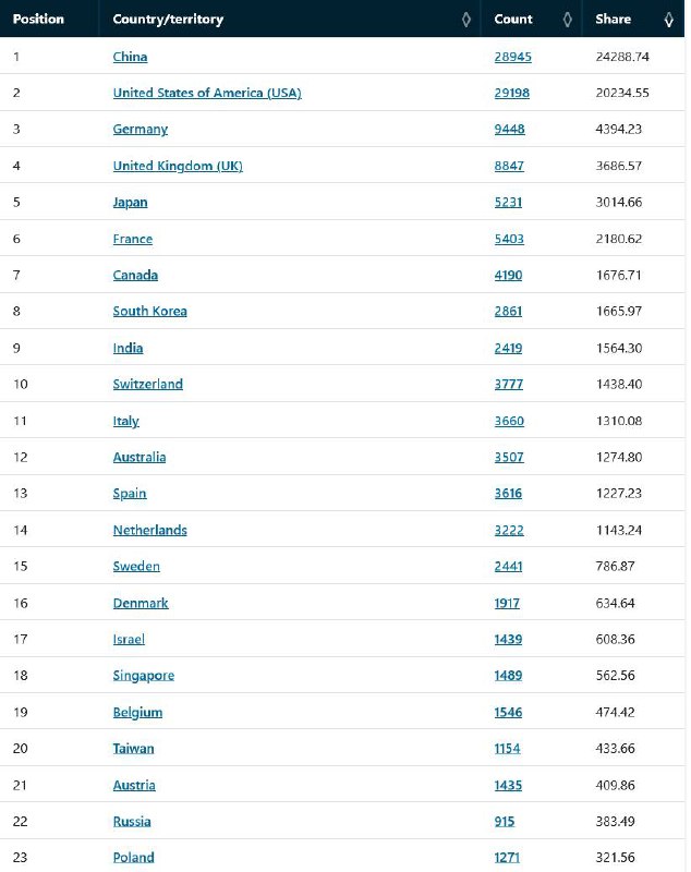 Nature ΠΎΠΏΡΠ±Π»ΠΈΠΊΠΎΠ²Π°Π»ΠΈ ΡΠΎΠΏ ΡΡΡΠ°Π½ — Π»ΠΈΠ΄Π΅ΡΠΎΠ² ΠΏΠΎ ΠΈΡΡΠ»Π΅Π΄ΠΎΠ²Π°Π½ΠΈΡΠΌ, Π Π€ Π½Π° 22 ΠΌΠ΅ΡΡΠ΅, Π° ΠΠΈΡΠ°ΠΉ Π½Π° 1-ΠΌ