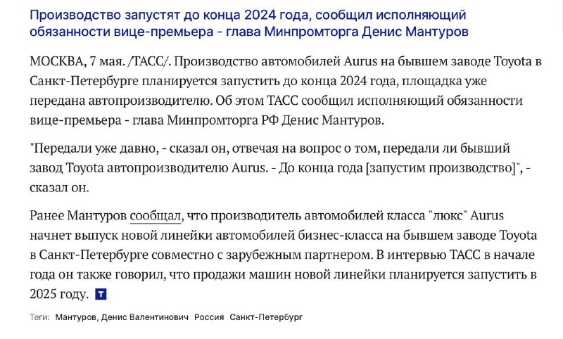 «ΠΠ΅ ΡΠΌΠΎΠ³Π»Π°…» ΠΠΈΠ΄ΠΈΡΠ΅, ΠΊΠ°ΠΊ Π³Π»Π°Π²Π° ΠΠΈΠ½ΠΏΡΠΎΠΌΡΠΎΡΠ³Π° ΠΠ΅Π½ΠΈΡ ΠΠ°Π½ΡΡΡΠΎΠ² Π½Π° ΡΠΊΡΠΈΠ½ΡΠΎΡΠ΅ Π²ΡΡΠ΅ ΠΎΠ±Π΅ΡΠ°Π΅Ρ Π·Π°ΠΏΡΡΡΠΈΡΡ ΠΏΡΠΎΠΈΠ·Π²ΠΎΠ΄ΡΡΠ²ΠΎ Π°Π²ΡΠΎΠΌΠΎΠ±ΠΈΠ»Π΅ΠΉ Aurus Π½Π° Π±ΡΠ²ΡΠ΅ΠΌ Π·Π°Π²ΠΎΠ΄Π΅ Toyota Π² ΠΠ΅ΡΠ΅ΡΠ±ΡΡΠ³Π΅? ΠΡΠΈΡΠ΅ΠΌ ΠΎΠ±Π΅ΡΠ°Π΅Ρ Π½Π΅ Π³Π΄Π΅-Π½ΠΈΠ±ΡΠ΄Ρ Π² ΠΊΡΡΠ³Ρ ΡΠ΅ΠΌΡΠΈ Π·Π° ΡΠ°ΡΠΊΠΎΠΉ ΡΠ°Ρ, Π° Π½Π° ΠΏΠΎΠ»ΡΡ ΠΠΠΠ€! Π Π°Π·Π²ΠΈΠ΄ΡΡΠ΅.