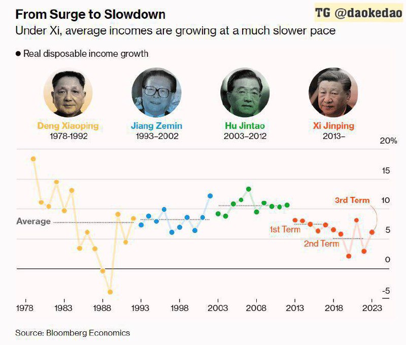 При каком лидере Коммунистической партии Китая доходы населения росли быстрее всего?