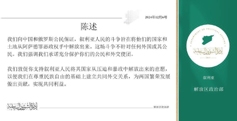 Π‘ΠΈΡΠΈΠΉΡΠΊΠ°Ρ ΠΎΠΏΠΏΠΎΠ·ΠΈΡΠΈΡ Β«Π₯Π°ΠΉΡΡ Π’Π°Ρ ΡΠΈΡ Π°Ρ-Π¨Π°ΠΌΒ» (Π₯Π’Π) ΠΎΠΏΡΠ±Π»ΠΈΠΊΠΎΠ²Π°Π»Π° ΠΏΡΠΈΠ·ΡΠ² ΠΊ ΡΡΡΡΠΊΠΈΠΌ ΠΈ ΠΊΠΈΡΠ°ΠΉΡΠ°ΠΌ Π½Π΅ Π±ΠΎΡΡΡΡΡ Π±ΠΎΡΡΠ±Ρ ΡΠΈΡΠΈΠΉΡΠΊΠΎΠ³ΠΎ Π½Π°ΡΠΎΠ΄Π°.