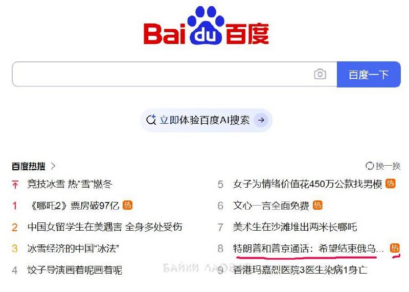 Новость о разговоре Путина и Трампа висит в «горячих» на главной странице поисковика Baidu.