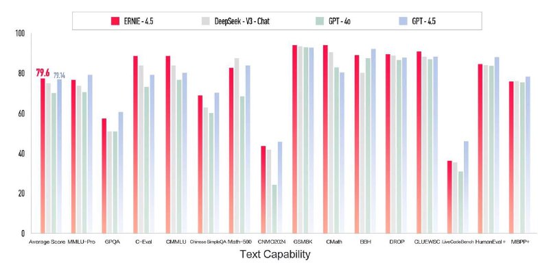 2. ERNIE 4.5 — ΠΏΠΎΡΠ»Π΅Π΄Π½ΡΡ Π²Π΅ΡΡΠΈΡ ΠΎΡΠ½ΠΎΠ²Π½ΠΎΠΉ ΠΌΠΎΠ΄Π΅Π»ΠΈ Baidu, ΠΎΠ½Π° ΠΌΡΠ»ΡΡΠΈΠΌΠΎΠ΄Π°Π»ΡΠ½Π°Ρ, ΠΏΠΎ Π·Π°ΡΠ²Π»Π΅Π½ΠΈΡ ΡΠ°Π·ΡΠ°Π±ΠΎΡΡΠΈΠΊΠΎΠ² ΠΏΡΠ΅Π²ΠΎΡΡ ΠΎΠ΄ΠΈΡ ΠΌΠΎΠ΄Π΅Π»Ρ OpenAI GPT-4.5 ΠΏΠΎ Π½Π΅ΡΠΊΠΎΠ»ΡΠΊΠΈΠΌ Π±Π΅Π½ΡΠΌΠ°ΡΠΊΠ°ΠΌ, Π° ΡΠ°ΠΊΠΆΠ΅ Π΅Ρ ΡΠ΅Π·ΡΠ»ΡΡΠ°ΡΡ ΡΠΎΠΏΠΎΡΡΠ°Π²ΠΈΠΌΡ Ρ GPT-4.5 ΠΈ Π»ΡΡΡΠ΅, ΡΠ΅ΠΌ DeepSeek V3, Π² ΡΠ΅ΠΊΡΡΠΎΠ²ΡΡ Π·Π°Π΄Π°ΡΠ°Ρ .