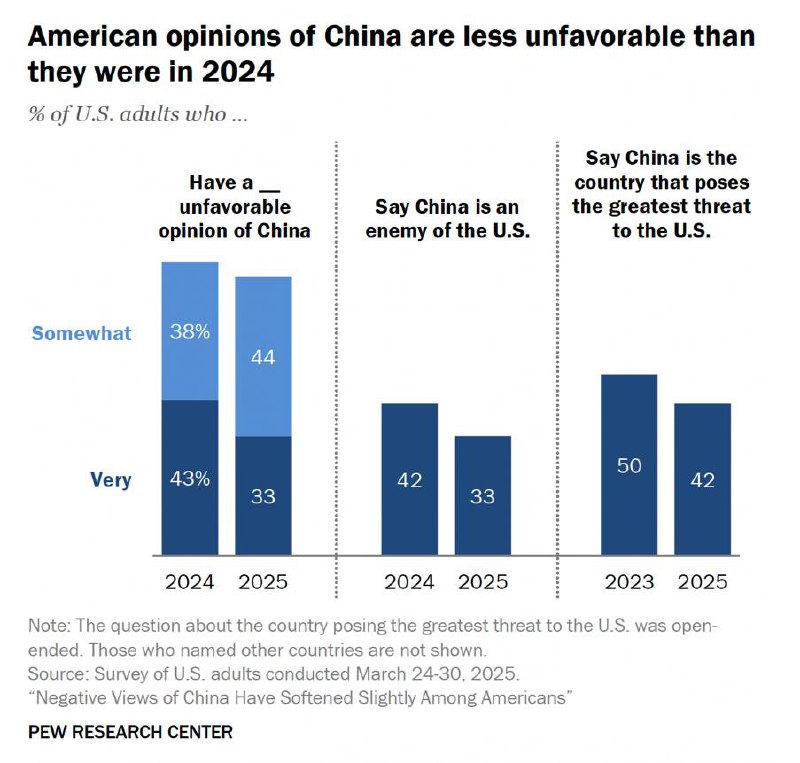 ΠΠΏΠ΅ΡΠ²ΡΠ΅ Π·Π° ΠΏΡΡΡ Π»Π΅Ρ Π΄ΠΎΠ»Ρ Π°ΠΌΠ΅ΡΠΈΠΊΠ°Π½ΡΠ΅Π² Ρ Π½Π΅Π±Π»Π°Π³ΠΎΠΏΡΠΈΡΡΠ½ΡΠΌ ΠΌΠ½Π΅Π½ΠΈΠ΅ΠΌ ΠΎ ΠΠΈΡΠ°Π΅ ΡΠ½ΠΈΠ·ΠΈΠ»Π°ΡΡ ΠΏΠΎ ΡΡΠ°Π²Π½Π΅Π½ΠΈΡ Ρ ΠΏΡΠ΅Π΄ΡΠ΄ΡΡΠΈΠΌ Π³ΠΎΠ΄ΠΎΠΌ β Ρ ΠΎΡΡ ΠΈ Π½Π΅Π·Π½Π°ΡΠΈΡΠ΅Π»ΡΠ½ΠΎ, Ρ 81% Π² 2024 Π³ΠΎΠ΄Ρ Π΄ΠΎ 77% Π² 2025 Π³ΠΎΠ΄Ρ. Π Π΄ΠΎΠ»Ρ ΡΠ΅Ρ , ΠΊΡΠΎ ΠΈΠΌΠ΅Π΅Ρ ΠΎΡΠ΅Π½Ρ Π½Π΅Π±Π»Π°Π³ΠΎΠΏΡΠΈΡΡΠ½ΠΎΠ΅ ΠΌΠ½Π΅Π½ΠΈΠ΅ ΠΎ ΠΠΈΡΠ°Π΅, ΡΠ½ΠΈΠ·ΠΈΠ»Π°ΡΡ Π½Π° 10 ΠΏΡΠΎΡΠ΅Π½ΡΠ½ΡΡ ΠΏΡΠ½ΠΊΡΠΎΠ².
