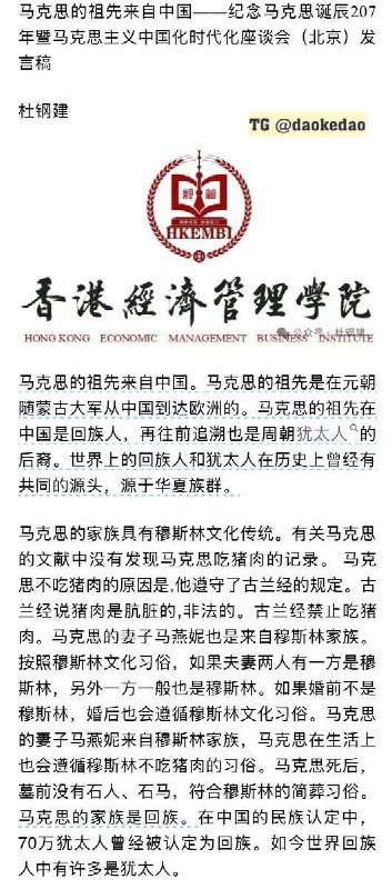 Предки Маркса были выходцами из Китая. Они прибыли в Европу из Китая с монгольской армией во времена династии Юань.