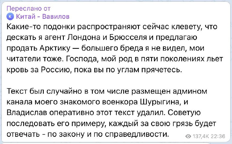 Π§ΡΠΎ ΠΊΠ°ΡΠ°Π΅ΡΡΡ ΡΡΠ²Π΅ΡΠΆΠ΄Π΅Π½ΠΈΡ ΠΠ°Π²ΠΈΠ»ΠΎΠ²Π°, ΡΡΠΎ ΠΎΠ½, ΡΠΊΠΎΠ±Ρ, Π΄Π΅Π»Π°Π΅Ρ Π²ΡΡ Π΄Π»Ρ ΡΠ°Π·Π²ΠΈΡΠΈΡ ΡΠΎΡΡΠΈΠΉΡΠΊΠΎ-ΠΊΠΈΡΠ°ΠΉΡΠΊΠΎΠΉ Π΄ΡΡΠΆΠ±Ρ, ΡΠΎ ΡΠΎΡΡΠΈΠΉΡΠΊΠΈΠΉ ΠΠΠ, Π²ΡΠ½ΡΠΆΠ΄Π΅Π½Π½ΡΠΉ ΠΎΠΏΡΠΎΠ²Π΅ΡΠ³Π°ΡΡ Π΅Π³ΠΎ ΠΈΠ½ΡΠΈΠ½ΡΠ°ΡΠΈΠΈ, Π΄Π°Π» ΡΠ΅ΡΠΊΡΡ ΠΎΡΠ΅Π½ΠΊΡ Π±Π»ΠΎΠ³Π΅ΡΡΠΊΠΎΠΉ ΠΏΠΈΡΠ°Π½ΠΈΠ½Ρ ΠΠ°Π²ΠΈΠ»ΠΎΠ²Π°: