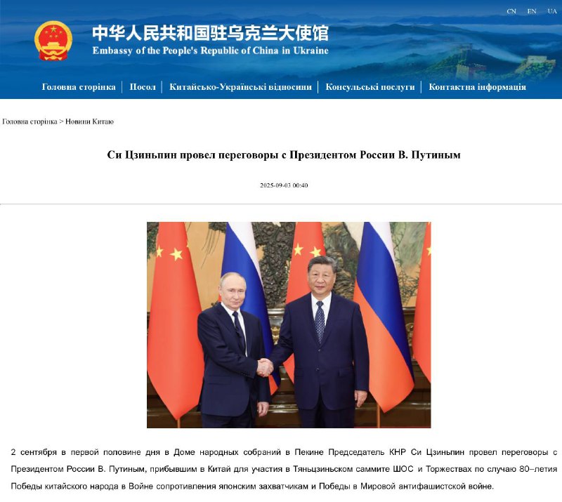 ΠΠΈΡΠ°ΠΉΡΠΊΠΎΠ΅ ΠΏΠΎΡΠΎΠ»ΡΡΡΠ²ΠΎ Π½Π° Π£ΠΊΡΠ°ΠΈΠ½Π΅ ΡΠ°Π·ΠΌΠ΅ΡΡΠΈΠ»ΠΎ Π½Π° ΡΠ²ΠΎΠ΅ΠΌ ΡΠ°ΠΉΡΠ΅ ΠΎΡΡΠ΅Ρ ΠΎ Π²ΡΡΡΠ΅ΡΠ΅ Π‘ΠΈ Π¦Π·ΠΈΠ½ΡΠΏΠΈΠ½Π° Ρ ΠΡΡΠΈΠ½ΡΠΌ. ΠΠ° Π΅ΡΠ΅ Π½Π° ΡΡΡΡΠΊΠΎΠΌ ΡΠ·ΡΠΊΠ΅.
