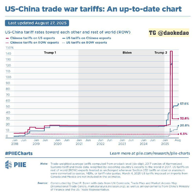 ΠΠΎ ΡΠΎΡΡΠΎΡΠ½ΠΈΡ Π½Π° 27 Π°Π²Π³ΡΡΡΠ°: ΡΡΠ΅Π΄Π½ΠΈΠΉ ΡΠ°ΡΠΈΡ Π‘Π¨Π Π½Π° ΠΊΠΈΡΠ°ΠΉΡΠΊΠΈΠ΅ ΡΠΎΠ²Π°ΡΡ ΡΠΎΡΡΠ°Π²Π»ΡΠ΅Ρ 57,6%, Π° ΡΡΠ΅Π΄Π½ΠΈΠΉ ΡΠ°ΡΠΈΡ ΠΠΈΡΠ°Ρ Π½Π° Π°ΠΌΠ΅ΡΠΈΠΊΠ°Π½ΡΠΊΠΈΠ΅ ΡΠΎΠ²Π°ΡΡ ΡΠΎΡΡΠ°Π²Π»ΡΠ΅Ρ 32,6%.