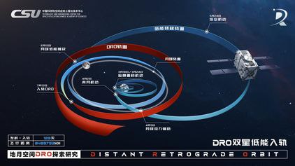 Π’ ΠΌΠ°Ρ€Ρ‚Π΅ 2024 Π³ΠΎΠ΄Π° ΠšΠΈΡ‚Π°ΠΉ Π²Ρ‹Π²Π΅Π» Π½Π° ΠΎΡ€Π±ΠΈΡ‚Ρƒ Ρ‚Ρ€ΠΈ Π°ΠΏΠΏΠ°Ρ€Π°Ρ‚Π° β€” DRO-L, DRO-A ΠΈ DRO-B β€” для экспСримСнта ΠΏΠΎ Π½Π°Π²ΠΈΠ³Π°Ρ†ΠΈΠΈ Π½Π° ΠΎΠΊΠΎΠ»ΠΎΠ»ΡƒΠ½Π½Ρ‹Ρ… траСкториях. Π­Ρ‚ΠΎ Π±Ρ‹Π»Π° слоТная миссия с элСмСнтами баллистичСской Π°ΠΊΡ€ΠΎΠ±Π°Ρ‚ΠΈΠΊΠΈ: связка спутников Π΄ΠΎΠ»ΠΆΠ½Π° Π±Ρ‹Π»Π° Π²Ρ‹ΠΏΠΎΠ»Π½ΠΈΡ‚ΡŒ ΡΠ΅Ρ€ΠΈΡŽ Π³Ρ€Π°Π²ΠΈΡ‚Π°Ρ†ΠΈΠΎΠ½Π½Ρ‹Ρ… ΠΌΠ°Π½Ρ‘Π²Ρ€ΠΎΠ² Ρƒ Π›ΡƒΠ½Ρ‹ ΠΈ Π²Ρ‹ΠΉΡ‚ΠΈ Π½Π° Π΄Π°Π»Ρ‘ΠΊΡƒΡŽ Ρ€Π΅Ρ‚Ρ€ΠΎΠ³Ρ€Π°Π΄Π½ΡƒΡŽ ΠΎΡ€Π±ΠΈΡ‚Ρƒ (DRO) β€” ΡƒΡΡ‚ΠΎΠΉΡ‡ΠΈΠ²ΡƒΡŽ, Π½ΠΎ ΠΊΠ°ΠΏΡ€ΠΈΠ·Π½ΡƒΡŽ Ρ‚Ρ€Π°Π΅ΠΊΡ‚ΠΎΡ€ΠΈΡŽ, ΠΏΡ€ΠΎΡ…ΠΎΠ΄ΡΡ‰ΡƒΡŽ ΠΏΡ€ΠΈΠΌΠ΅Ρ€Π½ΠΎ Π² 70β€”100 тыс. ΠΊΠΌ ΠΎΡ‚ Π›ΡƒΠ½Ρ‹.