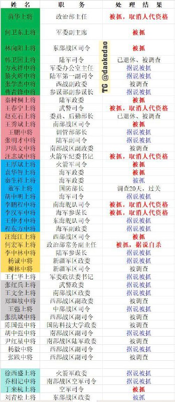 ΠΠ΅ΠΎΡΠΈΡΠΈΠ°Π»ΡΠ½ΡΠΉ ΡΠΏΠΈΡΠΎΠΊ Π³Π΅Π½Π΅ΡΠ°Π»ΠΎΠ² ΠΠ°ΡΠΎΠ΄Π½ΠΎ-ΠΎΡΠ²ΠΎΠ±ΠΎΠ΄ΠΈΡΠ΅Π»ΡΠ½ΠΎΠΉ Π°ΡΠΌΠΈΠΈ ΠΠΈΡΠ°Ρ Π°ΡΠ΅ΡΡΠΎΠ²Π°Π½Π½ΡΡ , Π½Π°Ρ ΠΎΠ΄ΡΡΠΈΡ ΡΡ ΠΏΠΎΠ΄ ΡΠ»Π΅Π΄ΡΡΠ²ΠΈΠ΅ΠΌ, Β«ΠΏΡΠΎΠΏΠ°Π²ΡΠΈΡ Β» ΠΈΠ»ΠΈ ΠΊ ΠΊΠΎΡΠΎΡΡΠΌ Π²ΠΎΠ·Π½ΠΈΠΊΠ»ΠΈ Π²ΠΎΠΏΡΠΎΡΡ Ρ ΠΊΠΎΠΌΠΏΠ΅ΡΠ΅Π½ΡΠ½ΡΡ ΠΎΡΠ³Π°Π½ΠΎΠ².