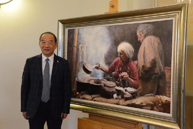 Китайский художник Хань Юйчэнь передал в дар Государственному Русскому музею в Санкт-Петербурге две картины о Тибете после выставки в Мраморном дворце. Это работы «Дым над очагом» (2015) и «Сердце Будды освящает небо» (2022).