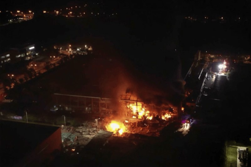 ΠΠΎΠ·Π³ΠΎΡΠ°Π½ΠΈΠ΅ ΠΈ Π²Π·ΡΡΠ² ΠΏΡΠΎΠΈΠ·ΠΎΡΠ»ΠΈ Π²Π΅ΡΠ΅ΡΠΎΠΌ 22 ΡΠ΅Π½ΡΡΠ±ΡΡ Π½Π° ΡΠ°Π±ΡΠΈΠΊΠ΅ ΠΏΠΎ ΠΏΡΠΎΠΈΠ·Π²ΠΎΠ΄ΡΡΠ²Ρ ΡΠ½Π°ΡΡΠΆΠ΅Π½ΠΈΡ Π΄Π»Ρ Π³ΠΎΠ»ΡΡΠ°. ΠΠ° ΠΌΠ΅ΡΡΠΎ ΠΏΡΠΎΠΈΡΡΠ΅ΡΡΠ²ΠΈΡ Π±ΡΠ»ΠΈ Π½Π°ΠΏΡΠ°Π²Π»Π΅Π½Ρ 34 ΠΏΠΎΠΆΠ°ΡΠ½ΡΠ΅ ΠΌΠ°ΡΠΈΠ½Ρ. ΠΡΠ΅ ΠΎΠ΄ΠΈΠ½ Π²Π·ΡΡΠ² ΠΏΠΎΠ·Π΄Π½Π΅Π΅ ΠΏΡΠΈΠ²Π΅Π» ΠΊ ΠΎΠ±ΡΡΡΠ΅Π½ΠΈΡ ΡΠ°ΡΡΠΈ Π·Π΄Π°Π½ΠΈΡ, Π² ΡΠ΅Π·ΡΠ»ΡΡΠ°ΡΠ΅ ΡΠ΅Π³ΠΎ ΠΏΠΎΠΆΠ°ΡΠ½ΡΠ΅ ΠΈ ΡΠ°Π±ΠΎΡΠΈΠ΅ ΠΎΠΊΠ°Π·Π°Π»ΠΈΡΡ ΠΏΠΎΠ΄ Π·Π°Π²Π°Π»Π°ΠΌΠΈ.